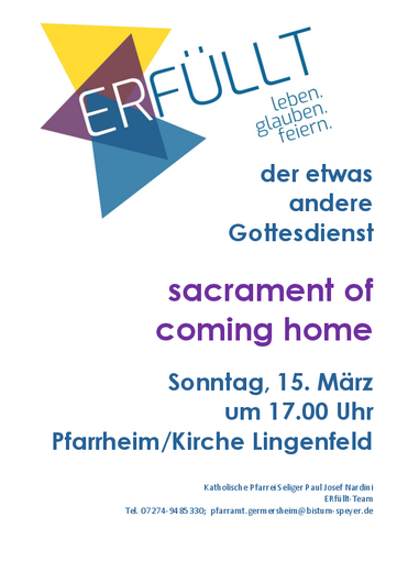 auf der Homepage der Pfarrei Seliger Paul Josef Nardini Germersheim mit ihren Gemeinden St. Jakobus Germersheim, St. Martinus Lingenfeld mit Westheim, St. Bartholomäus Schwegenheim und St. Johannes der Täufer Sondernheim! Hier können Sie sich über unsere Pfarrei und Gruppierungen sowie diverse Angebote und Veranstaltungen informieren.